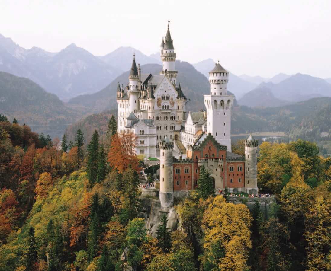 Built from 1869 to 1892, Neuschwanstein Castle is Romanesque Revival palace funded by Ludwig II of Bavaria’s personal fortune and extensive borrowing, not with Bavarian public funds. It was the inspiration for Disneyland’s Sleeping Beauty Castle.