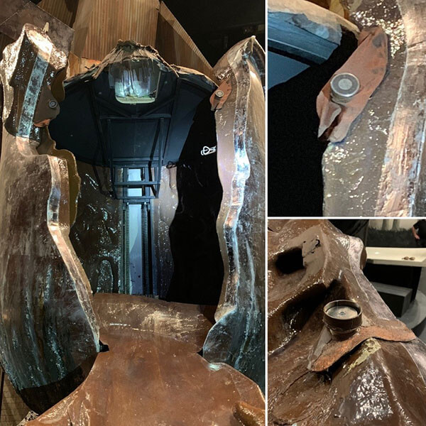 We started with the magic spoons. If you recall, every time a spell was cast on stage, a wooden spoon came to life with flickering lights before shooting out real flame! How to make a wooden spoon into a pyrotechnic marvel? This all came to life in the hands of Geoff Heron, our pyrotechnic expert on the stage crew, who crafted these particular spoons.