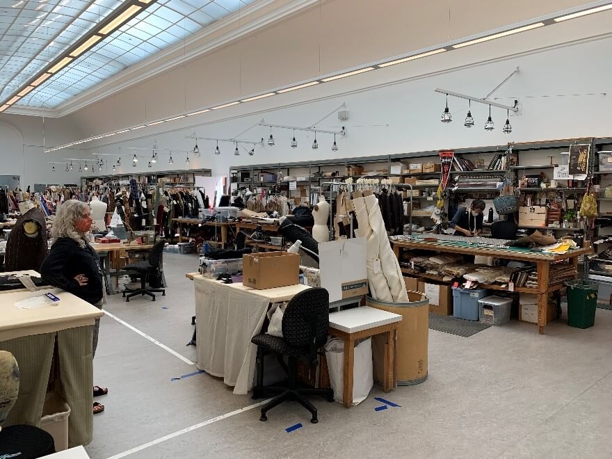 - Costume Shop: using the manufacturing guidelines from San Francisco, we were able to open the Costume Shop around June, creating social distancing pathways and discrete work areas that allowed us to build masks for essential workers and costumes through the second half of 2020.