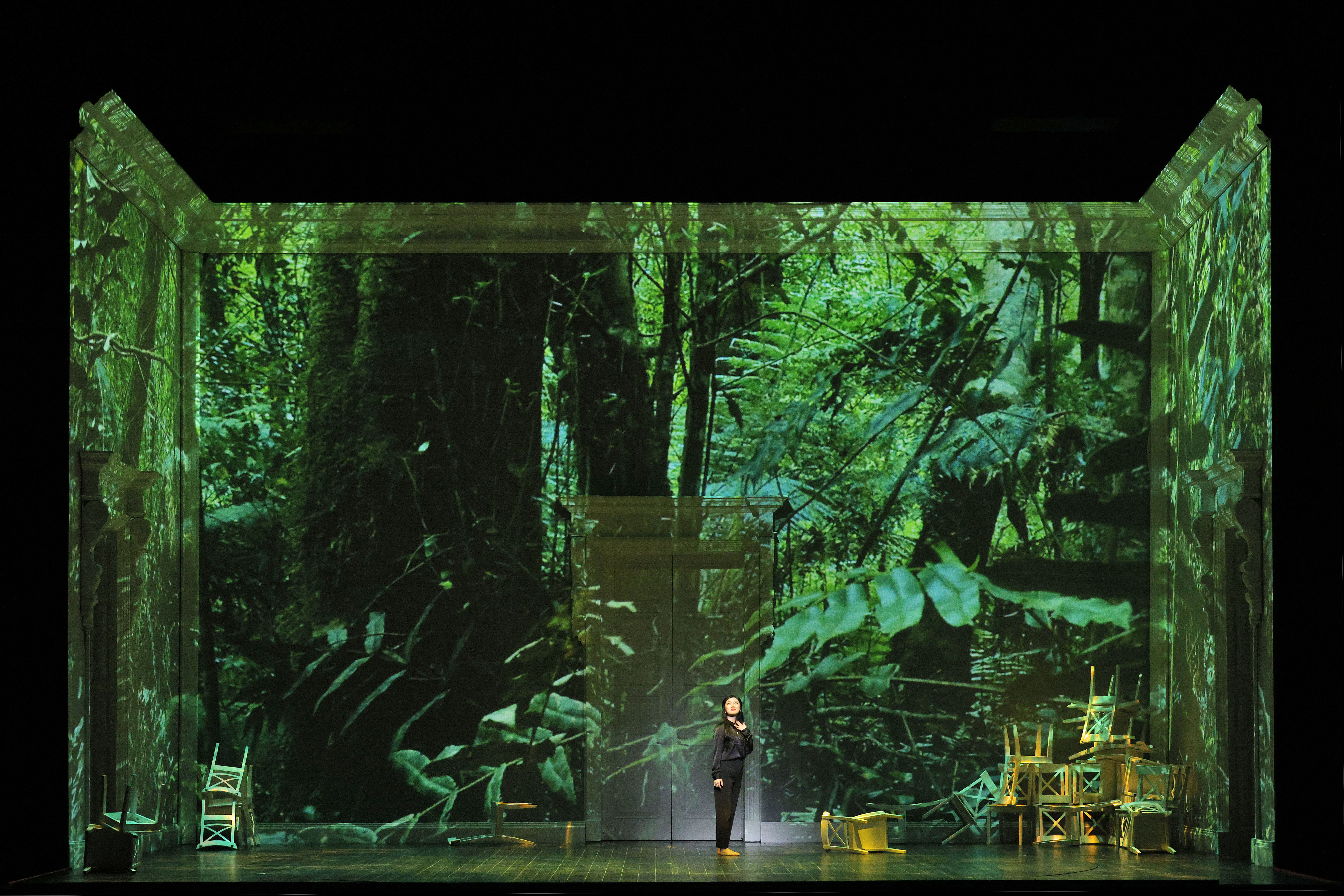 Lindy had already worked with projection designer David Bergman (Tony-nominated this year for The Picture of Dorian Gray) on a staging of Schubert’s Winterreise, so there was already a fluency between the two of them, working first in the studio to storyboard and plan the arc of the storytelling. As a foundational principle, they decided that they wanted to reflect the ancient nature of Crete—the largest of the Greek islands and the setting for Idomeneo. But they wanted to bring that ancient space into more immediate relief for a Pacific, not Mediterranean, audience. So, they focused on the island of Tasmania, the island off the southeast corner of Australia, with a population of about 500,000 and an area roughly equivalent to West Virginia. Tasmania is one of the most ancient places in the world, with parts of the island completely inaccessible and home to ancient, old-growth forests. There are places of true wilderness, an ancient land with an ancient mythology of first peoples. It was a perfect analogy for the themes of Idomeneo.