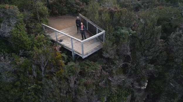 Catherine Pettman and her team taking a drone selfie while filming in Tasmania.