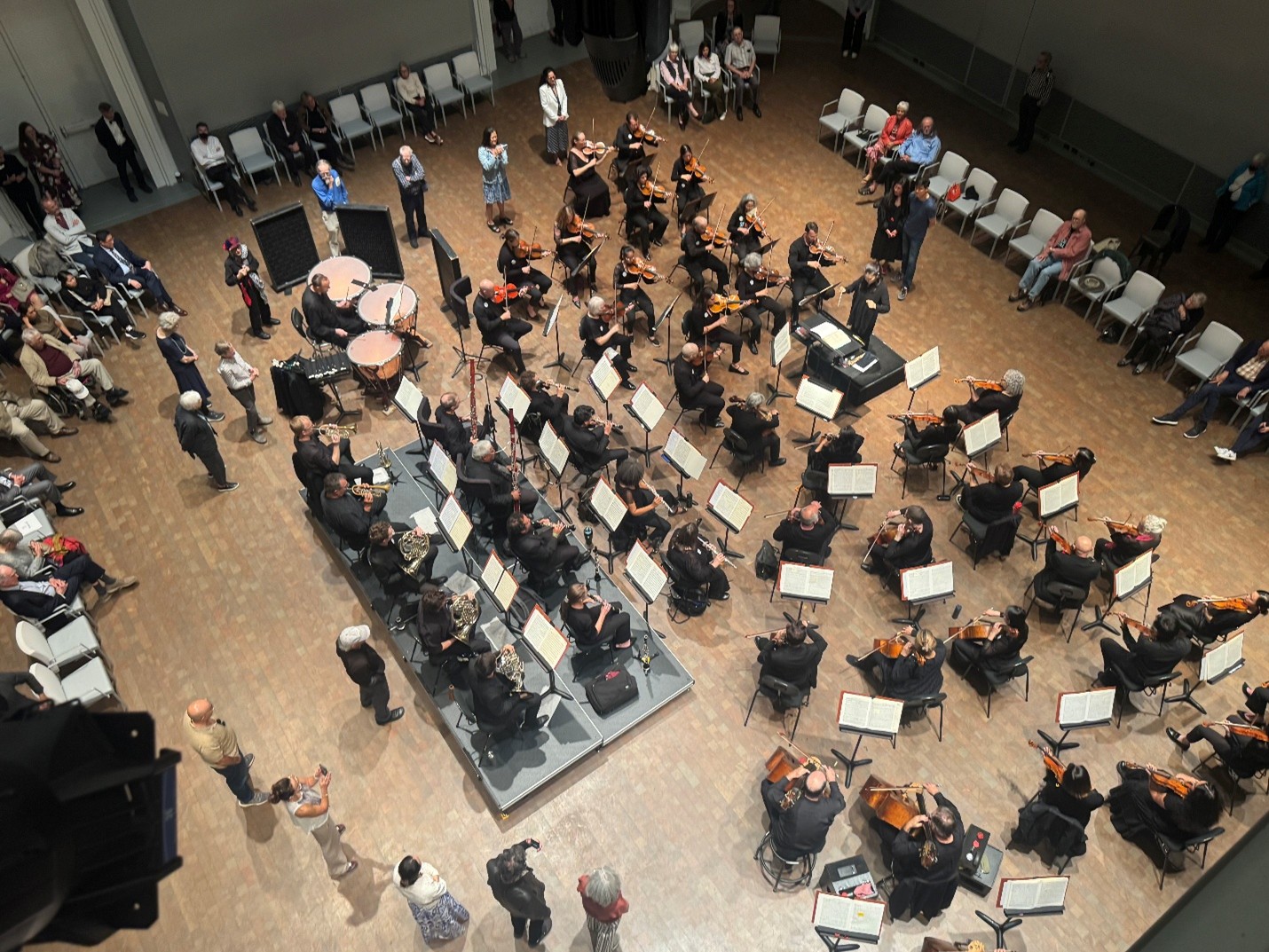 Eun Sun Kim leading the orchestra in an immersive donor event earlier in the year.