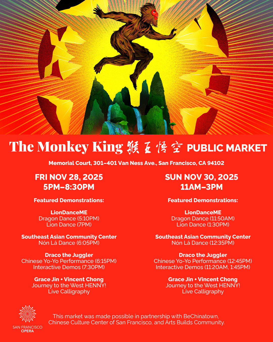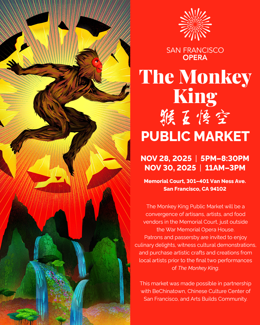 Head into the auditorium 55 minutes before the performance (6:25pm Friday, 1:05pm Sunday) to hear Sidney Chen's 20-minute pre-opera talk. You'll have time to grab a drink before the show! (7:30 Friday, 2pm Sunday)