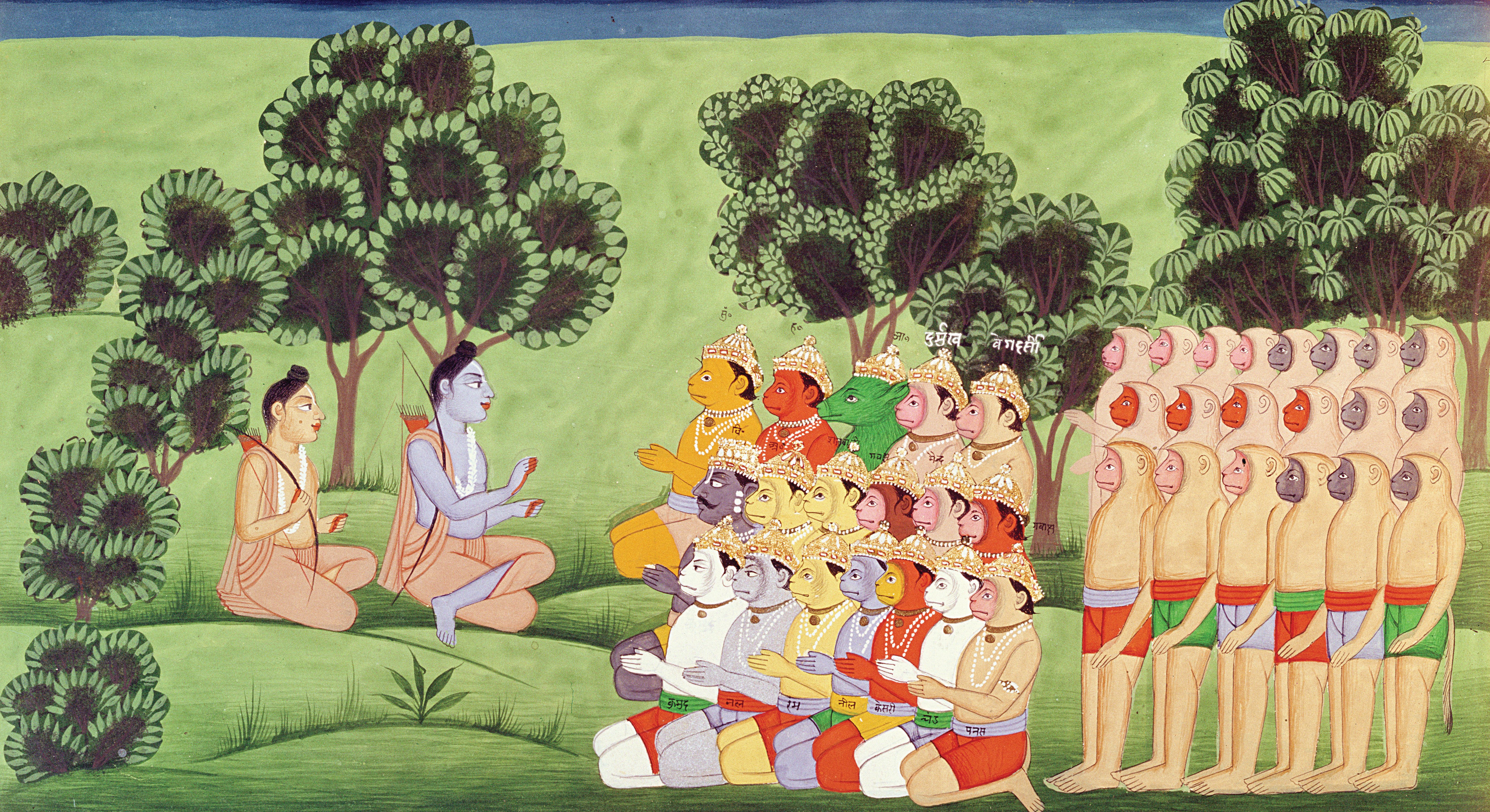 A scene of lakshmana consulting the heads of the monkey armies from Ramayana, the Indian epic which may be an early source for the Monkey King. Archives Charmet/Bridgeman Images.